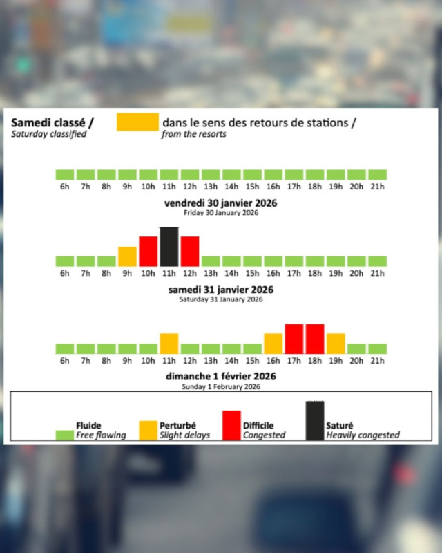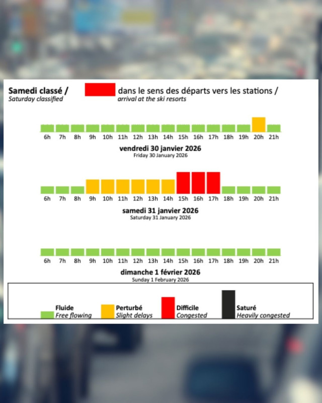 - Dimanche 1er février : Les conditions de déplacement seront perturbées sur le réseau routier de Savoie de 16h à 20h