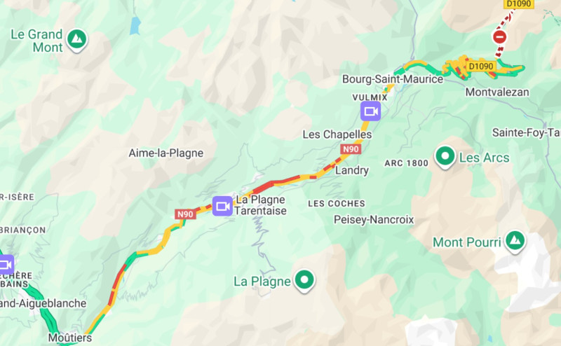 En Tarentaise, le trafic est ralenti, notamment sur l’axe reliant Moûtiers à Bourg-Saint-Maurice. La neige présente sur la chaussée et les opérations de déneigement en cours entraînent des ralentissements. Un accident vient de se produire au niveau de Centron sur la N90 (sens Albertville - Bourg-Saint-Maurice).