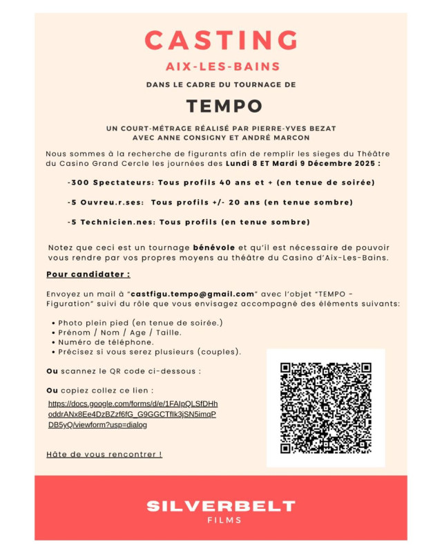 Aix-les-Bains Appel à figurants pour le tournage du court-métrage TEMPO