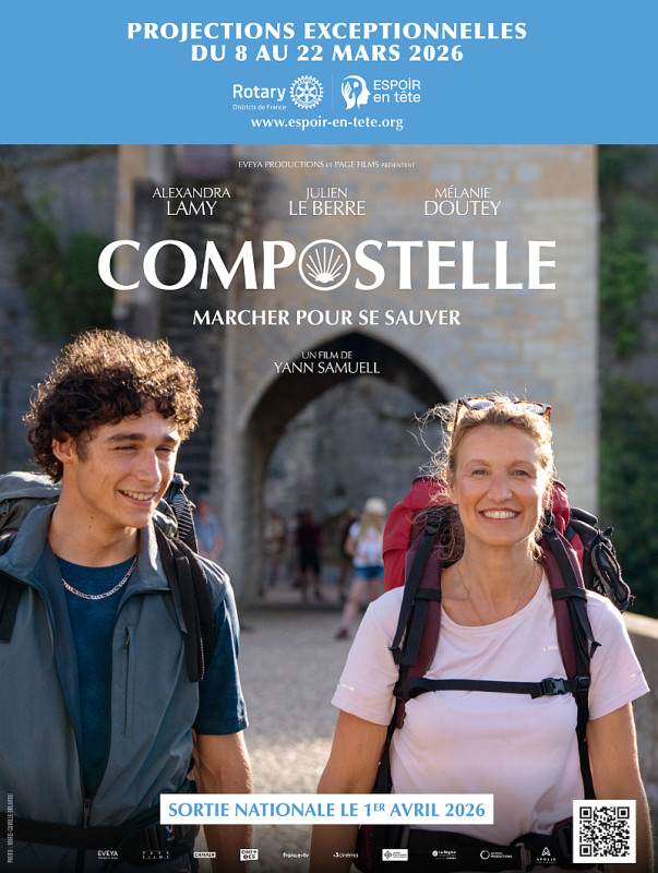 Depuis 2005, le Club Rotary de Chambéry est heureux de participer à l'opération Espoir En Tête en organisant l'avant première du film COMPOSTELLE avec Alexandra LAMY au cinéma PATHE de Chambéry le JEUDI 12 MARS 2026 à 19h30.