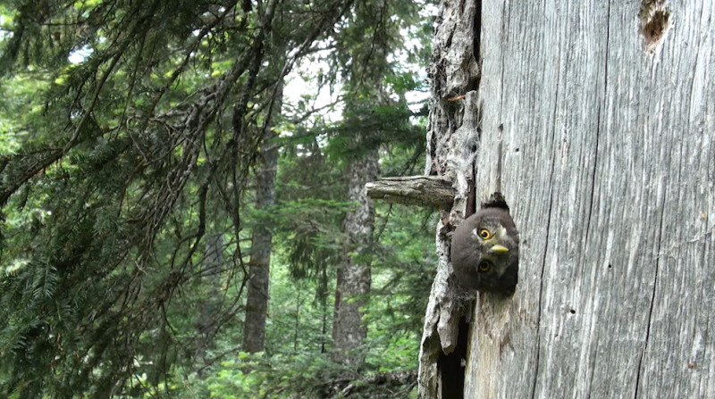 “Sur les flancs d’une vallée secrète, une vielle forêt restée sauvage voit arriver le printemps. C’est le moment que choisit un visiteur pour entrer dans ces bois et s’intégrer patiemment parmi les habitants. C’est plus particulièrement au travers des précieuses loges, ces cavités au cœur des troncs, que le visiteur apprivoise les histoires qui s’y jouent. Ainsi, des coups de becs du pic noir entamant une nouvelle loge à l’envol des jeunes chouettes en passant par le déménagement d’une portée de martre, c’est une incroyables toile de vies qui se tissu sous nos yeux. Ici, de loge en loge, chacun en sait plus qu’il n’y paraît sur les habitudes de ses voisins. Prédateurs et prédatés se côtoient au quotidien, contraints de vivre en bon voisinage, pour le pire comme pour le meilleur…”