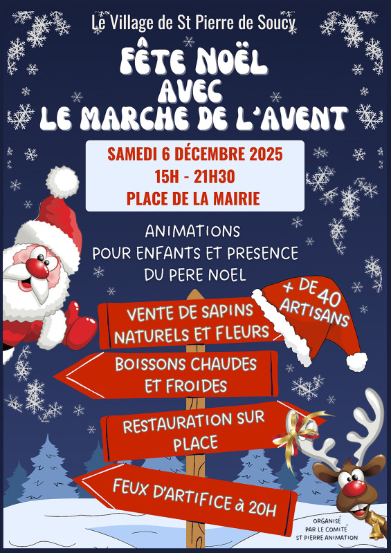St Pierre Animation organise un Marché de l'Avent le 06 décembre à ST PIERRE DE SOUCY (chef lieu). Nous avons plus de 40 exposants représentant pleins de produits différents et festifs pour partager un moment féérique. Ouvert au public de 15h à 21h30.