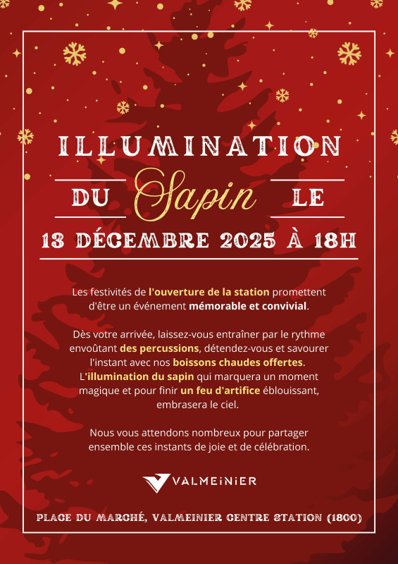 À 18h, l’illumination du sapin place du marché à Valmeinier centre station 1800 qui marquera un moment magique, d’un feu d’artifice pour clôturer cette première journée !