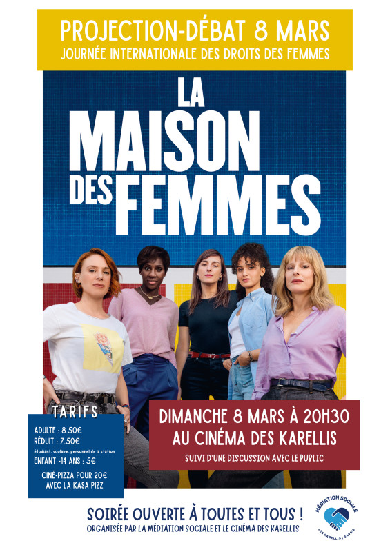Dans le cadre du 8 mars, journée internationale pour les droits des femmes, la médiation sociale et le cinéma des Karellis organise une projection-débat du film La Maison des femmes de Mélisa GODET (sortie nationale le 4 mars) à 20h30 le dimanche 8 mars.
