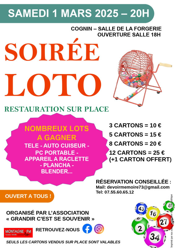Cognin Soirée Loto samedi 1 mars à 20h à Cognin