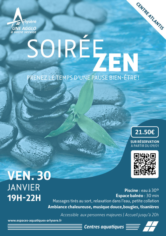 Le Centre Atlantis d’Arlysère vous propose une soirée placée sous le signe de la détente et du lâcher-prise. Le vendredi 30 janvier, de 19h à 22h, le centre aquatique invite le public à vivre une Soirée Zen, pensée comme une véritable pause bien-être, loin du stress du quotidien.