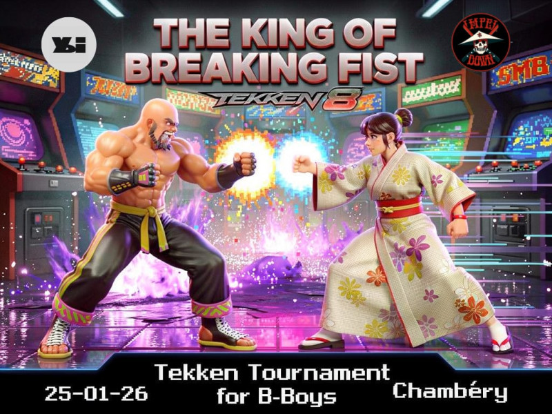 Un événement gaming où bboys & danseurs s'affronteront lors d'un tournoi sur Tekken 8 Top 16 composé de 7 guests et de 8 qualifiés sur place. Winners bracket & Losers bracket pendant le tournoi.