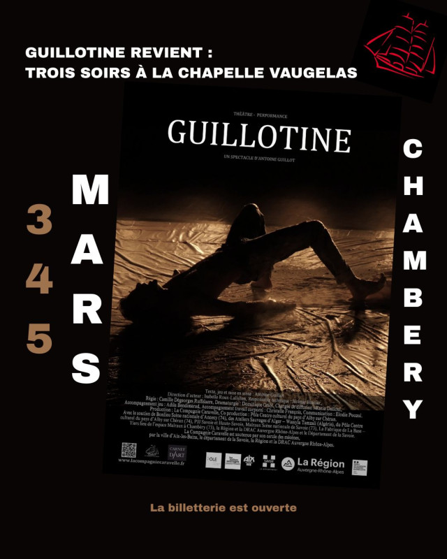 Billeterie : https://www.helloasso.com/associations/la-compagnie-caravelle/evenements/guillotine-3-4-5-mars-a-chambery