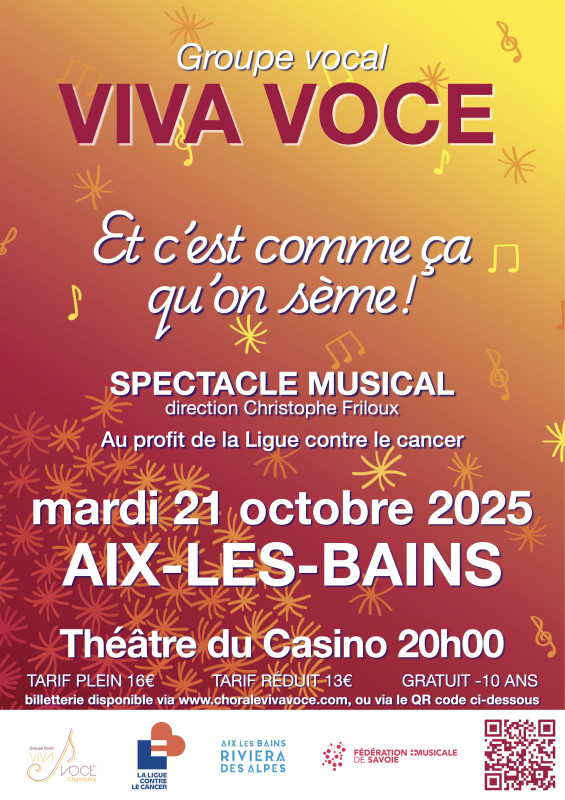 Billetterie : (HelloAsso) choralevivavoce.com/evenements ou https://billetterie.seetickets.fr/et-c-est-comme-ca-qu-on-seme-spectacle-theatre-du-casino-placement-libre-aix-les-bains-21-octobre-2025-css5-otaixlesbainsrivieradesalpes-pg101-ri11084679.html