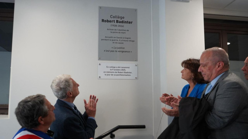 Ce jeudi 9 octobre, jour de la panthéonisation de Robert Badinter, le collège de Saint-Etienne-de-Cuines a été officiellement baptisé en son nom.
