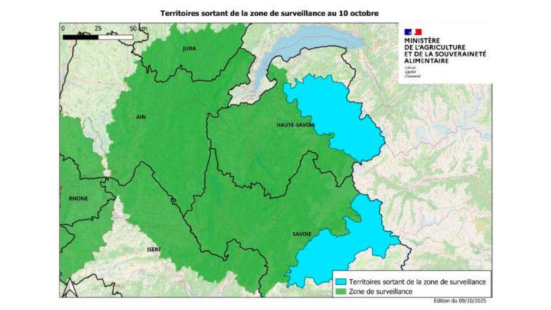 Depuis le 6 septembre, aucun nouveau foyer de DNC n’a été détecté dans la zone de surveillance couvrant plusieurs départements (Savoie, Haute-Savoie, Isère, Jura et Ain).