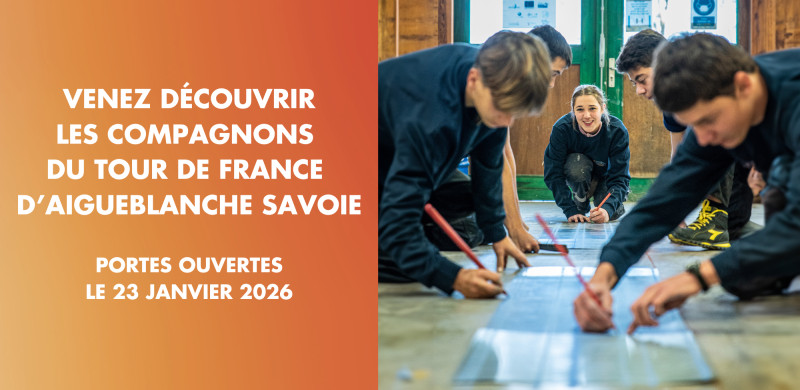 Le centre de formation des Compagnons du Tour de France d'Aigueblanche (Savoie) a le plaisir d’annoncer l’organisation de ses Portes Ouvertes le vendredi 23 janvier 2026, de 9h00 à 12h00.
