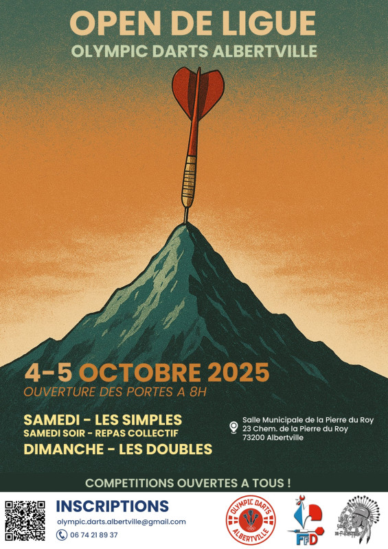 Toute les inscriptions se passe par ce lien : https://www.helloasso.com/associations/ligue-sud-est-de-flechettes/evenements/open-de-ligue-sud-est-2-olympic-darts-albertville-4-5-10-2025-2