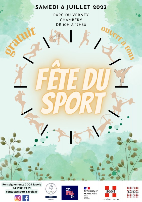 Le samedi 8 juillet le CDOS de la Savoie organise la Fête du Sport au parc du Verney afin de promouvoir le mouvement sportif.
