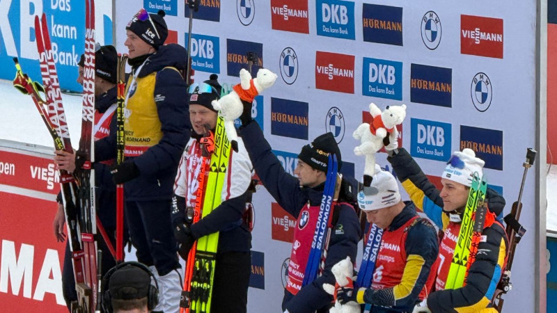 Le Savoyard Eric Perrot, quant à lui, a été impérial derrière la carabine (19/20) mais échoue au pied du podium, terminant quatrième. Les autres Français ont conclu dans le top 20, avec Quentin Fillon Maillet 14e, Fabien Claude 17e et Oscar Lombardot 20e.