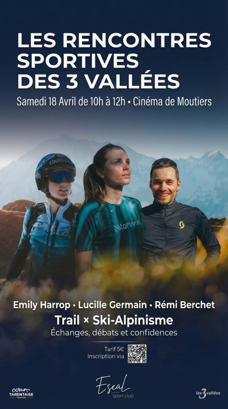 Rendez-vous le matin du samedi 18 Avril à Moûtiers (Savoie), pour assister à une rencontre inédite. Les athlètes Emily Harrop, Lucille Germain et Rémi Berchet prennent part à une table-ronde autour de leurs disciplines ski-alpinisme et trail.