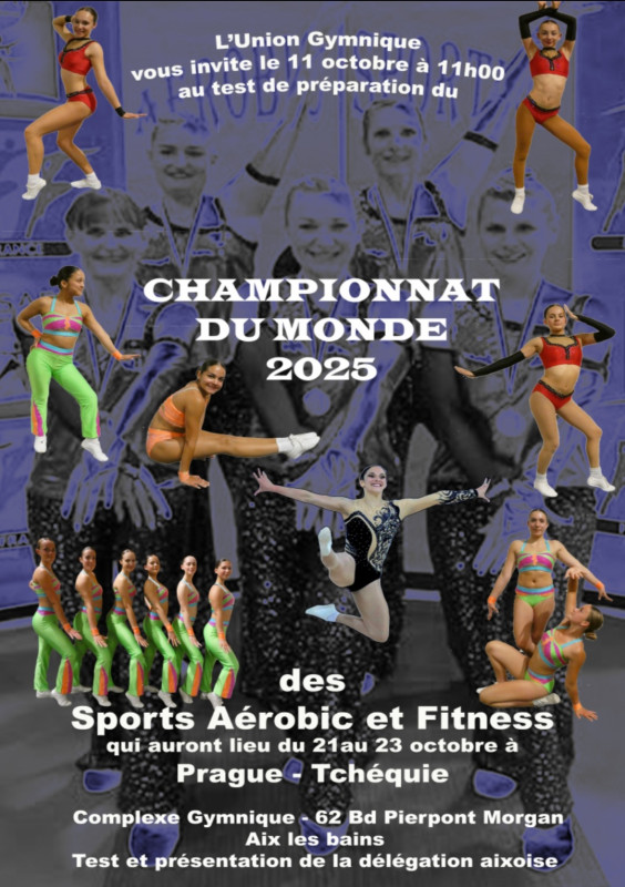 14 athlètes de l'Union Gymnique d'Aix-les-Bains sont sélectionnés pour participer au Championnat du Monde d'Aerobic Sportive et Fitness, sous l'égide de la FISAF Fédération Internationale Sport Aerobic & Fitness, qui aura lieu du 21 au 23 Octobre 2025 à Prague (République Tchèque).